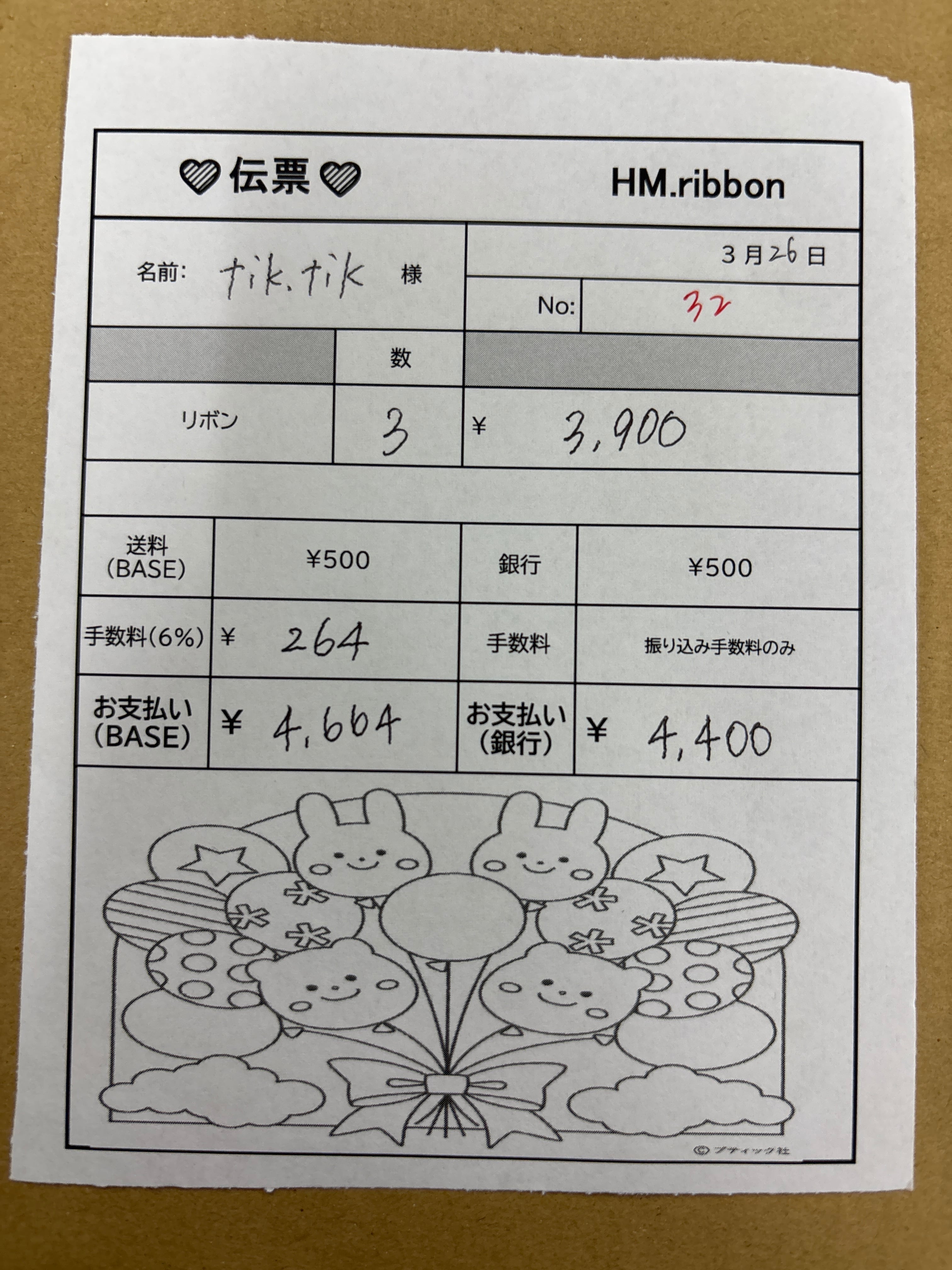 BASEお支払いの方より