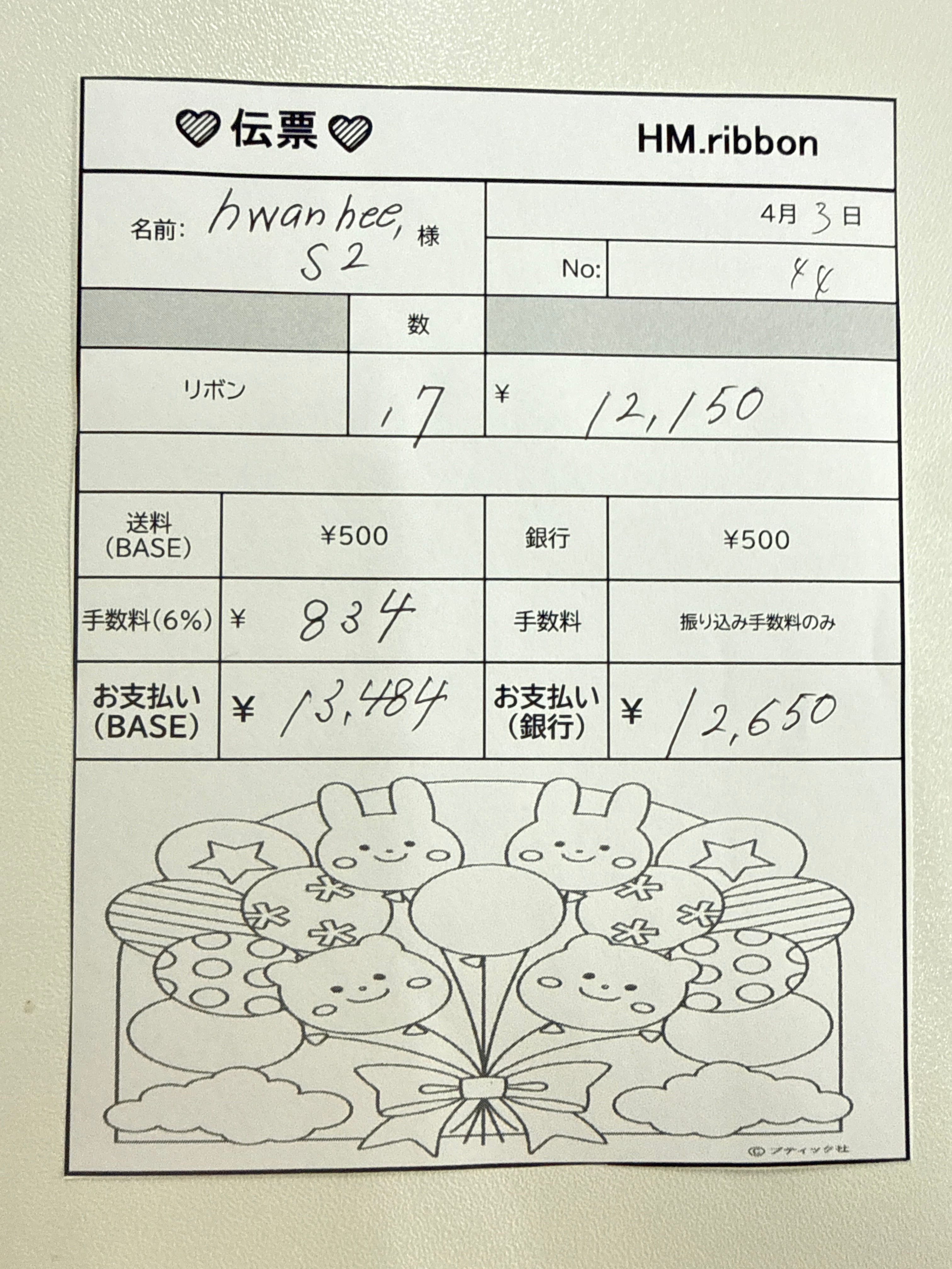 BASEお支払いの方より