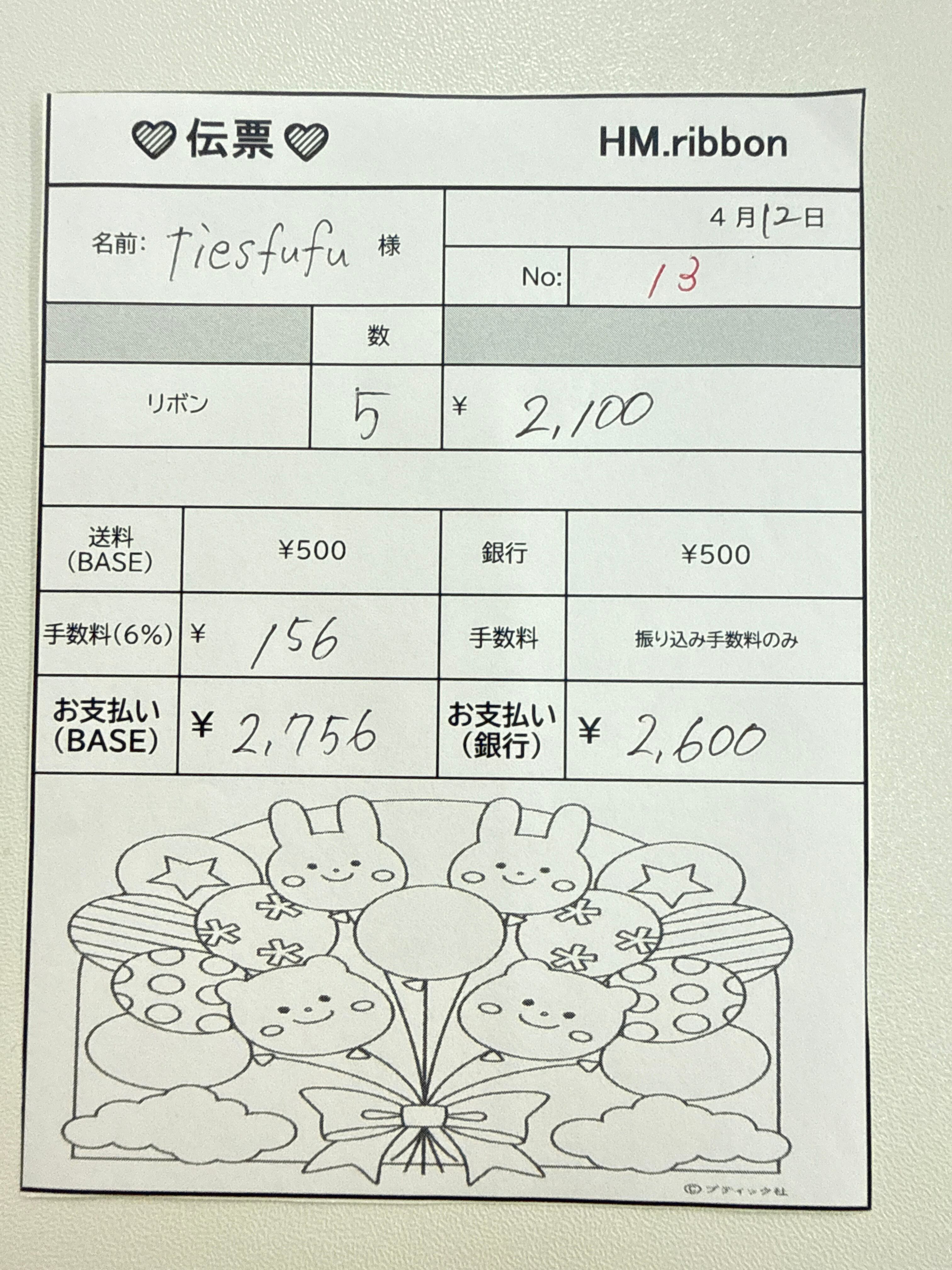 BASEお支払いの方より