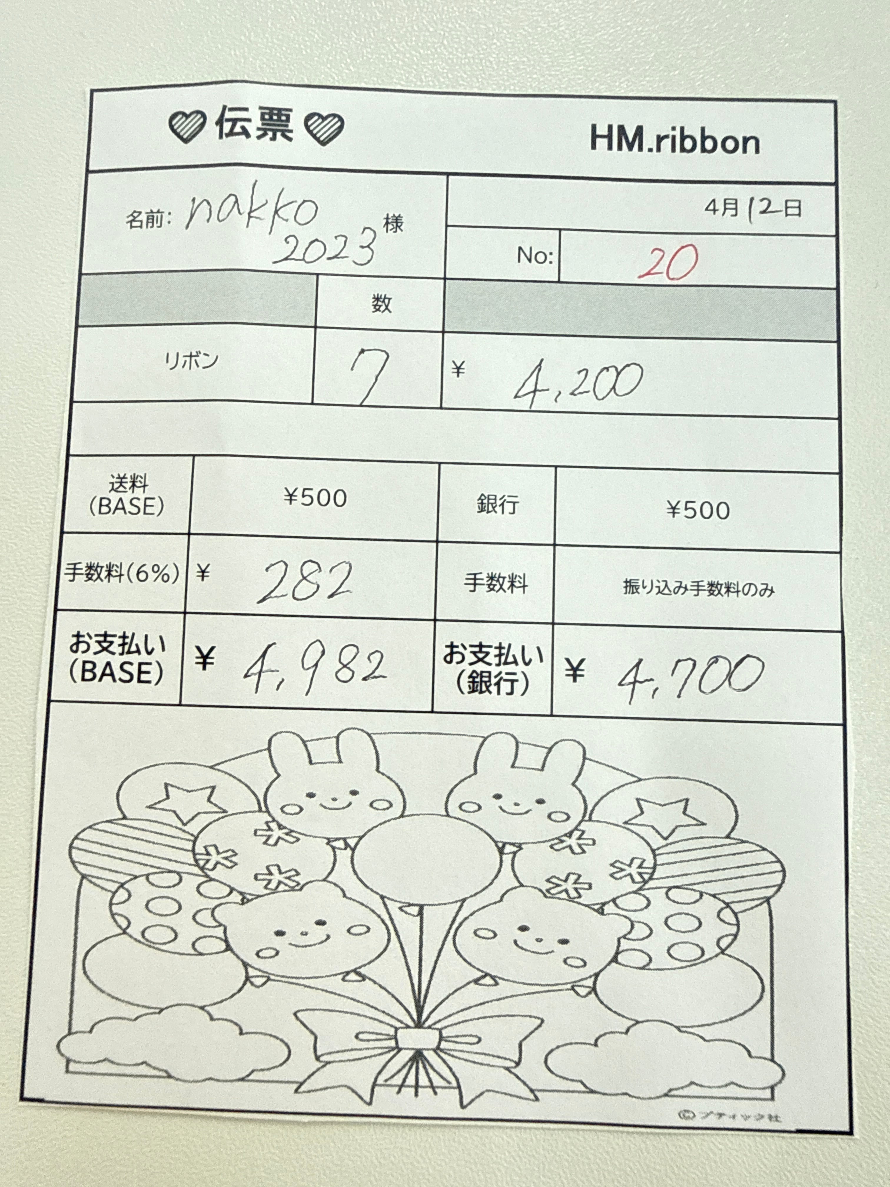 BASEお支払いの方より