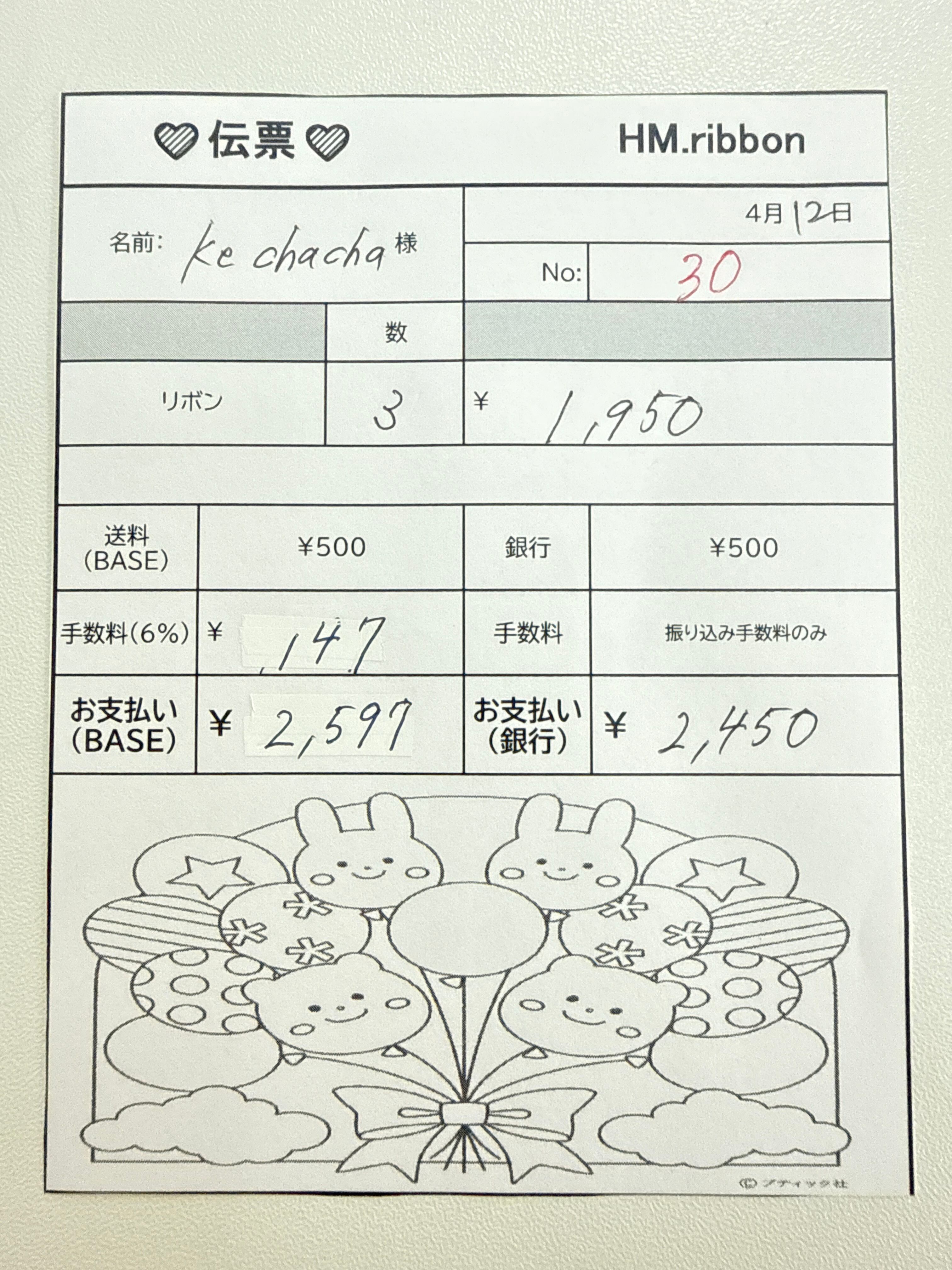 BASEお支払いの方より