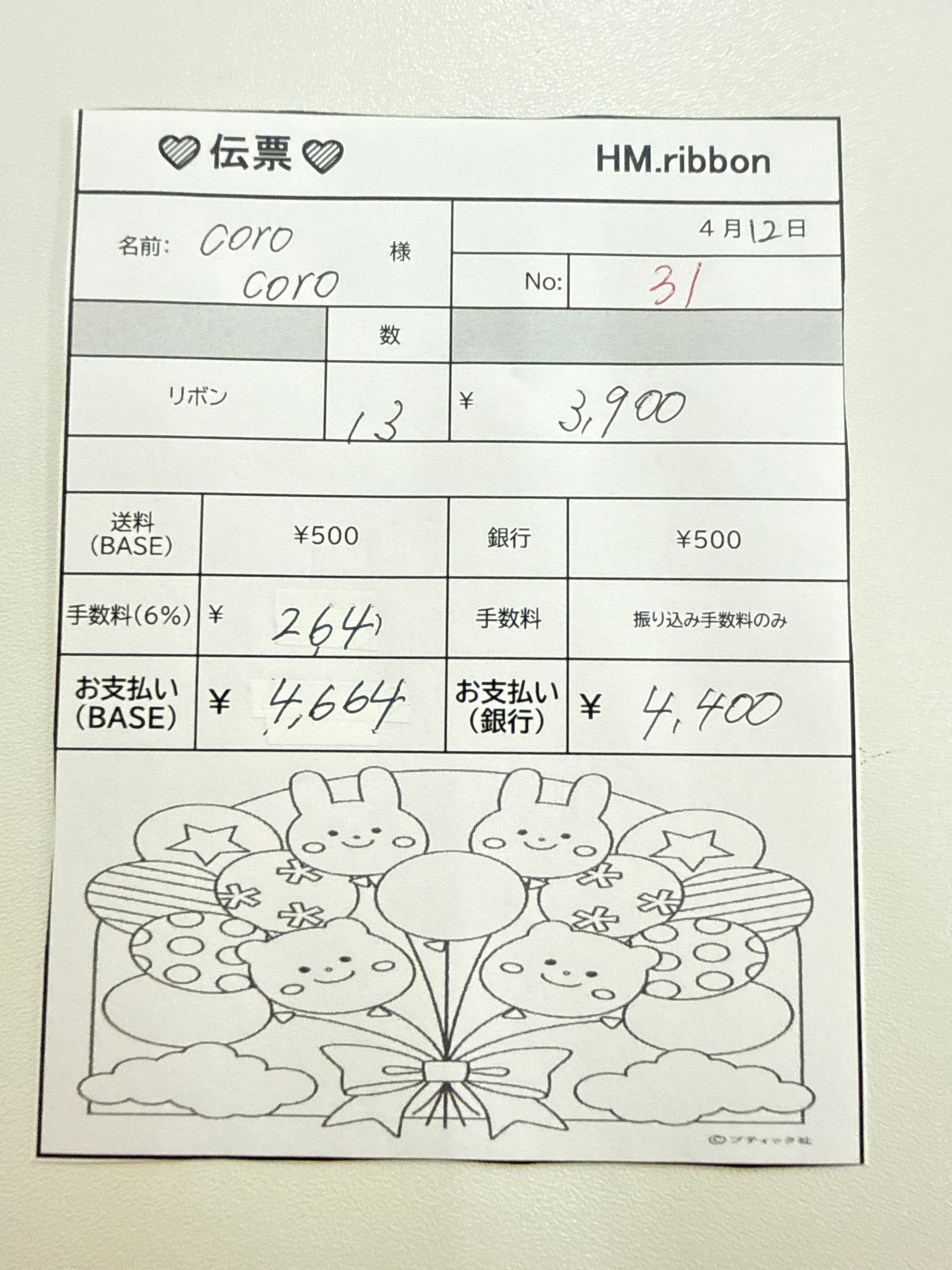 BASEお支払いの方より