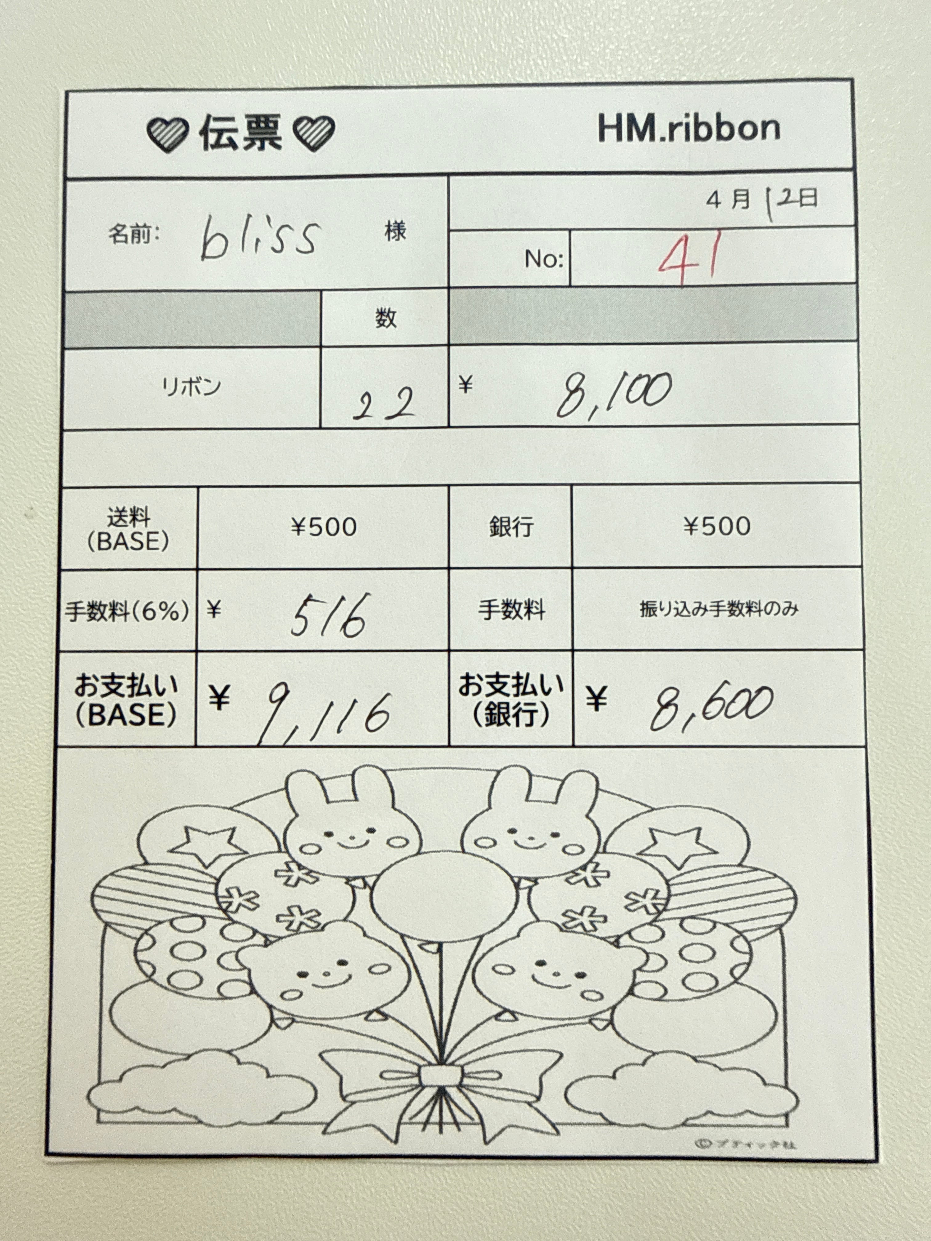 BASEお支払いの方より