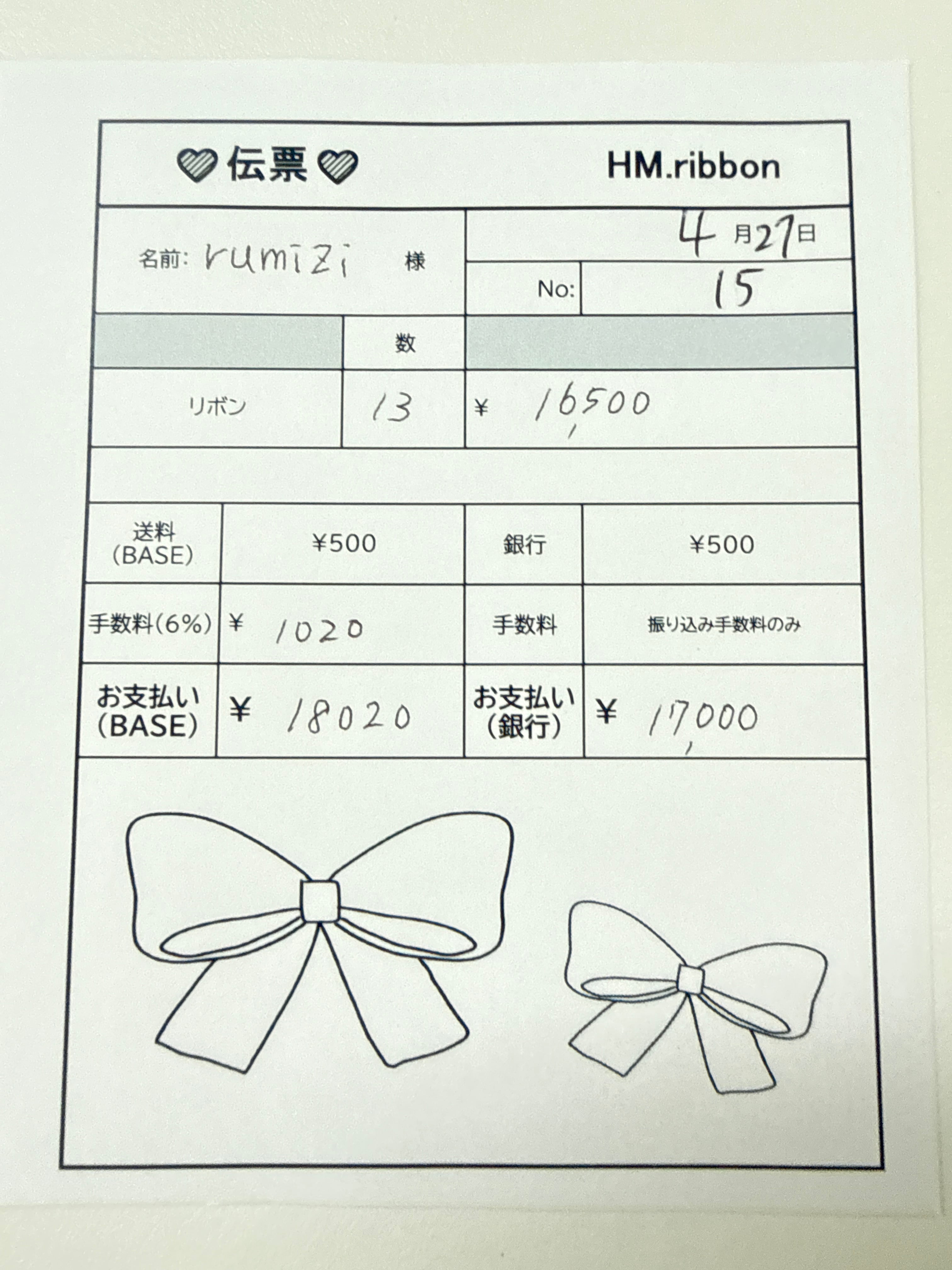 BASEお支払いの方より