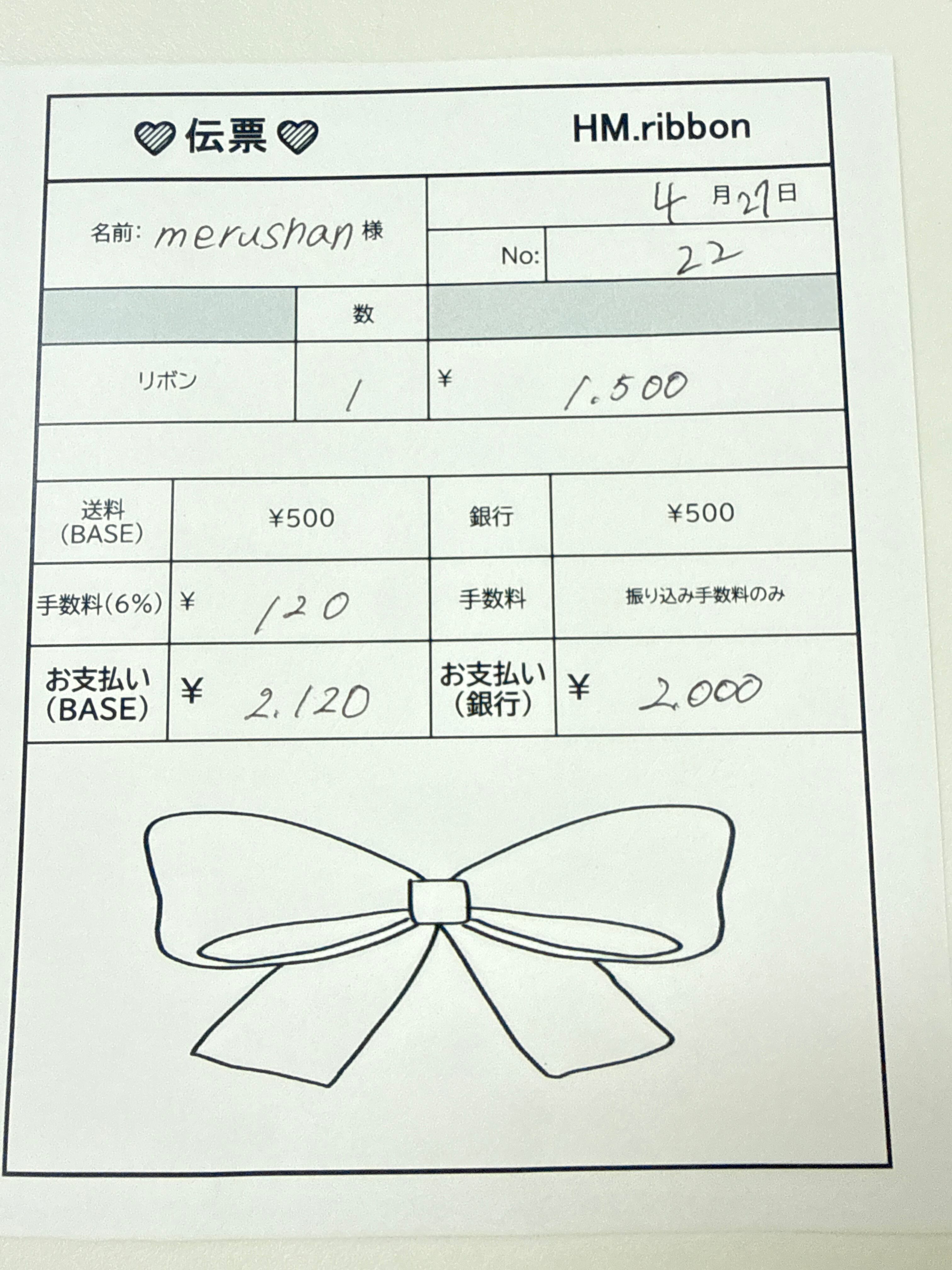 ①伝票のスクショ