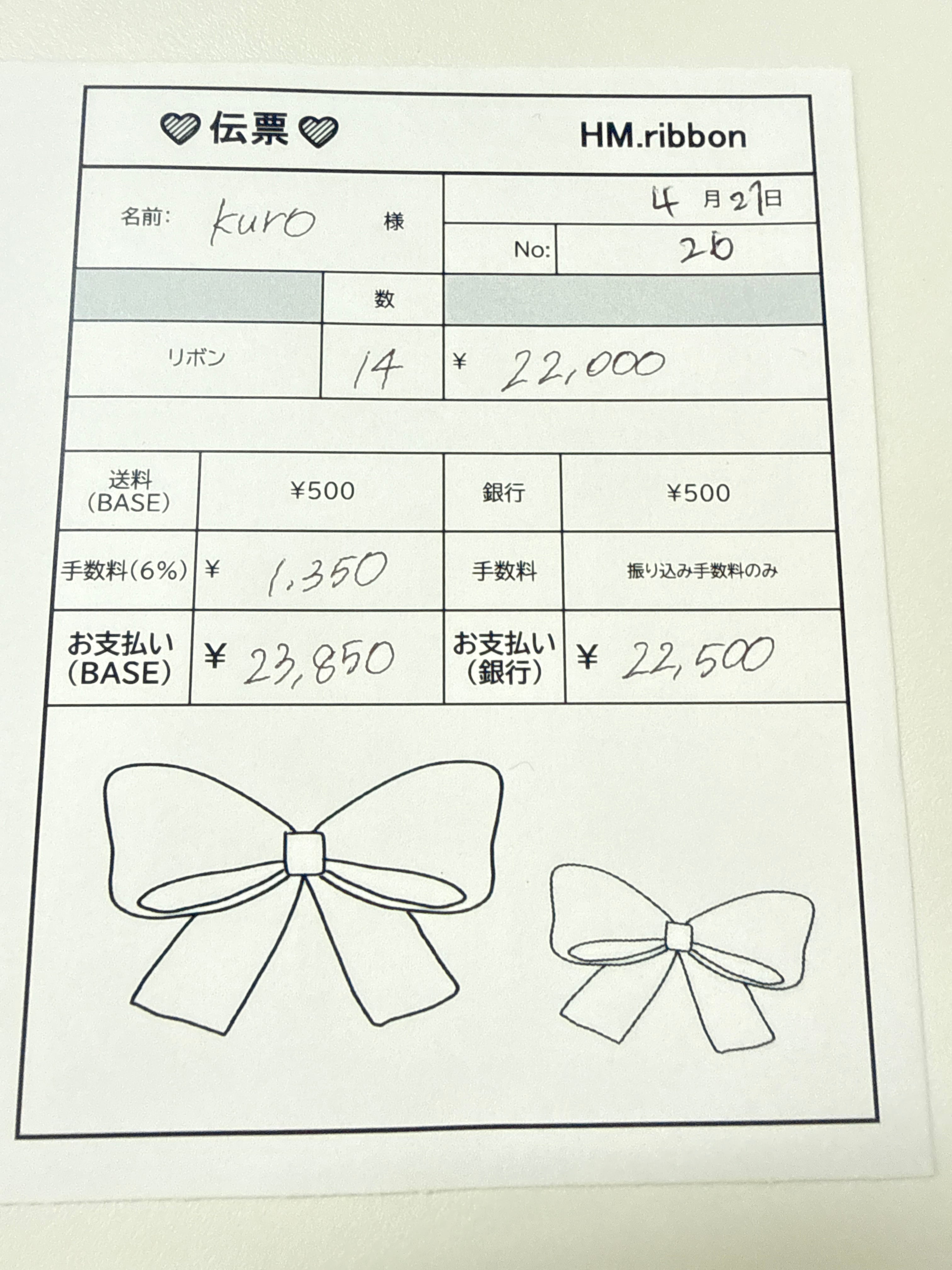 BASEお支払いの方より