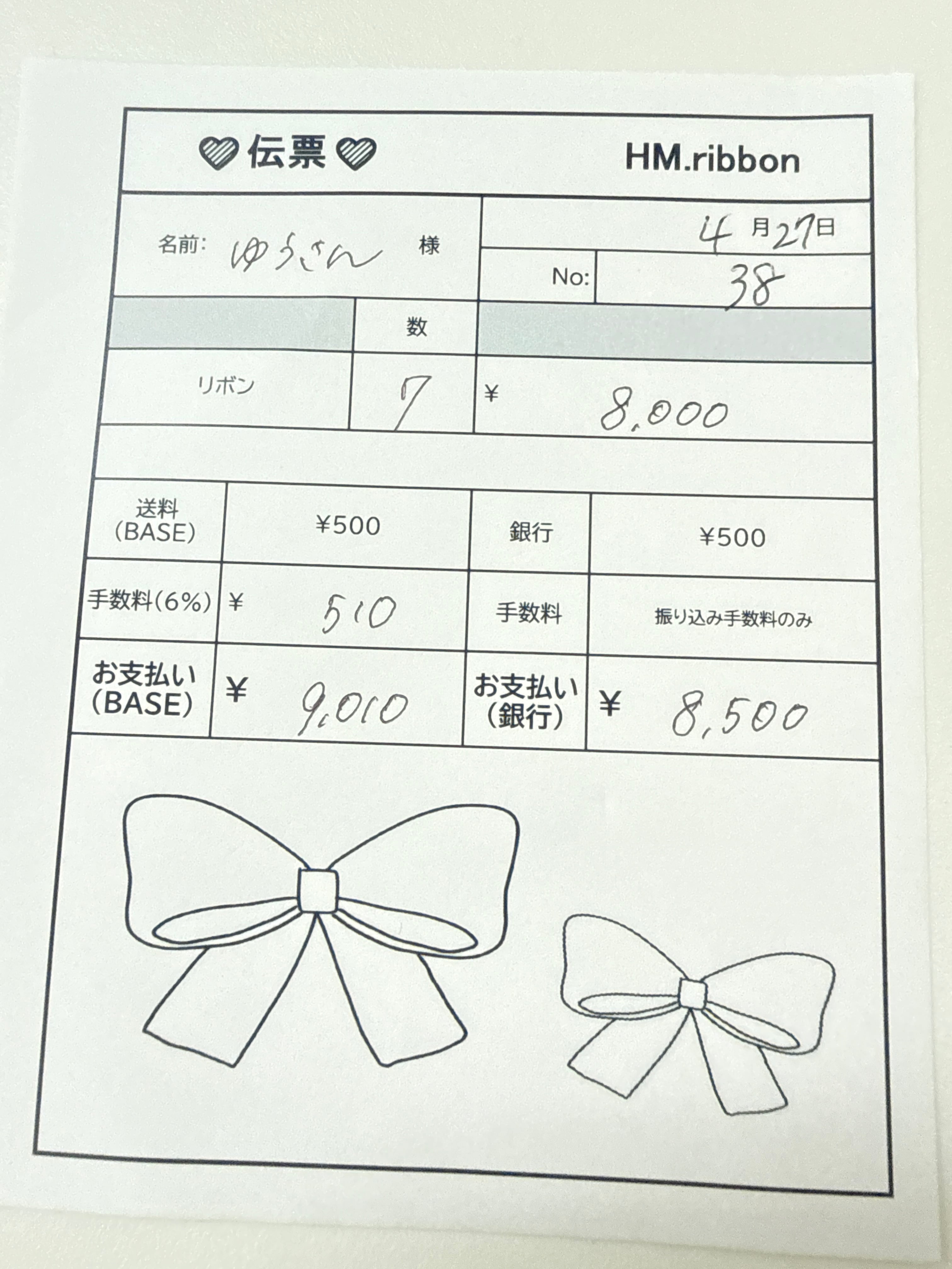 BASEお支払いの方より