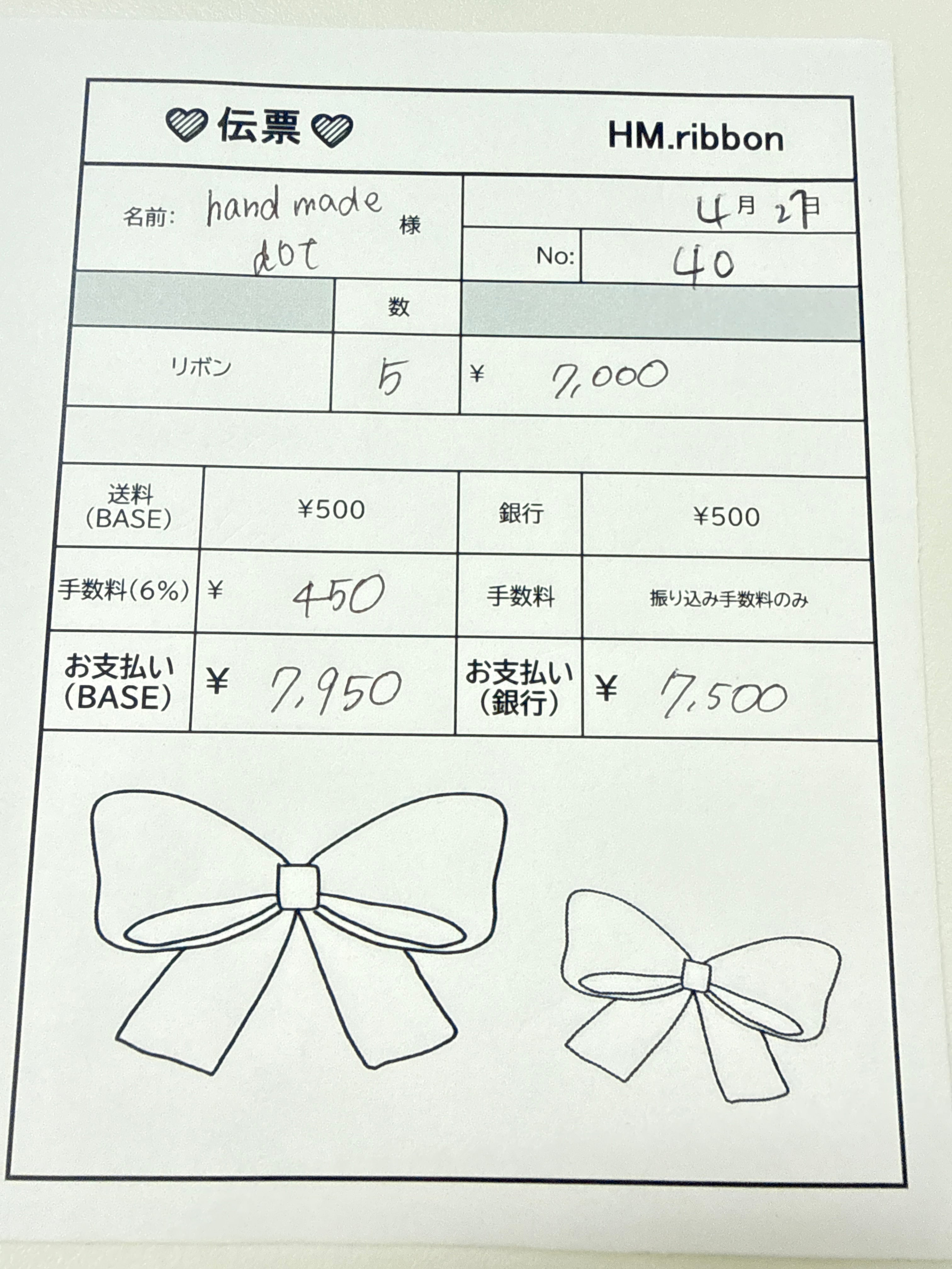 ①伝票のスクショ